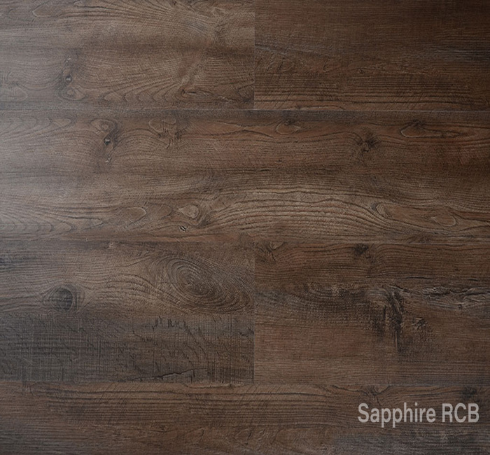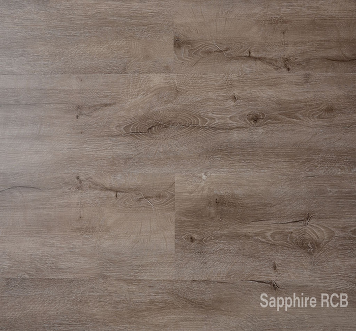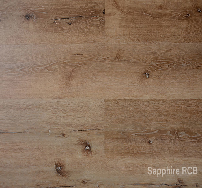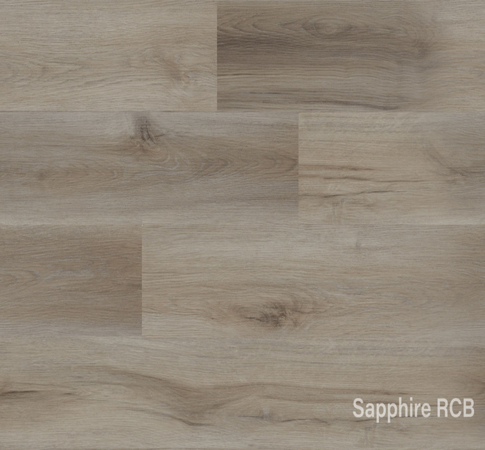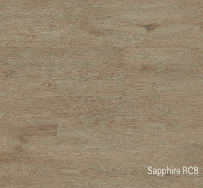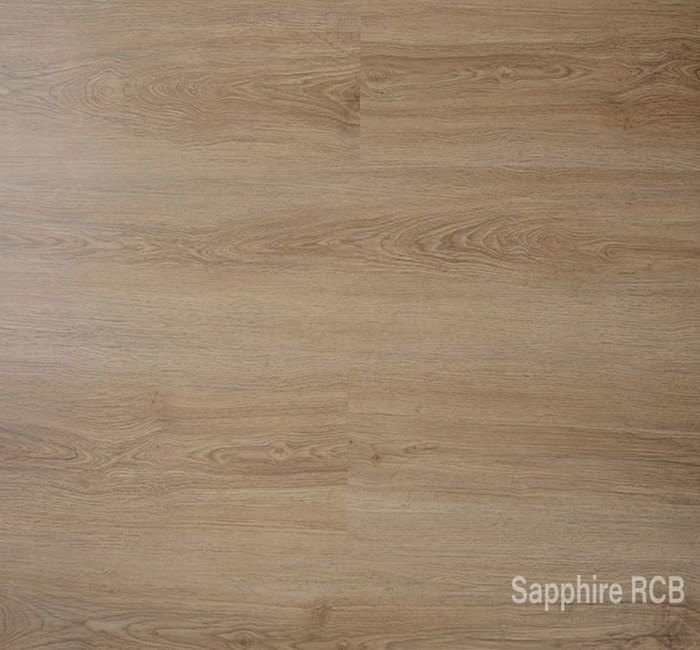 The Sapphire RCB range offers a SPC (Stone Plastic Composite) core an enhanced performing vinyl product. The collection offers antique wood finished designs with each panel incorporating a 4-sided micro-bevel which provides a unique floor finish that complements the overall ambience of the room.